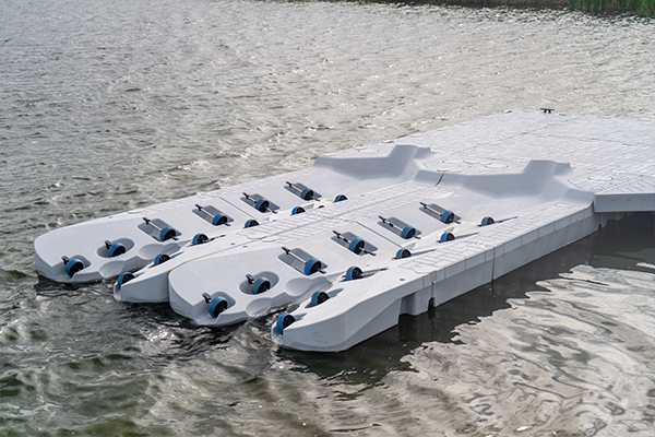 Nos pontons modulaires, plateformes Jet-ski et systèmes de connexion adoptent un design monochrome qui unifie l’apparence générale de vos espaces.